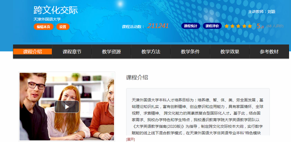 一、跨文化交际课程类型:线上线下混合式课程课程简介:本课程是乐鱼·体育非英语专业本科生的公共基础课。开设学期为大一下学期,2个学分,32学时。课程采用全英文教学、视频讲座、微课教学以及线上线下混合的教学形式,帮助学生提升跨文化能力。教学内容分为六个单元,每个单元分六个板块:跨文化理论(线上)、跨文化英语阅读(线上)、跨文化视角(线上)、国际传播(线上)、案例分析(线下)、作业和实践练习(线下)。线上课程重点拓展跨文化知识、英语技能、锻炼批判性思维能力,补充国际传播知识和技巧,赋能课堂教学。线下课程通过案例实践和丰富的课堂活动,锻炼学生的应用和实操能力。虚拟数字人进行章节介绍,提升学习兴趣。设置作业和实践指导,为学生参加英语类竞赛做好准备。课程SPOC平台和网址:超星学习通:https://mooc1.chaoxing.com/courseans/ps/216490766课程特色与创新:开展线上线下混合式教学,以学生需求和专业需求为指导,充分发挥院校特色和资源优势,将语言知识、语言技能、思维训练、人格培养有机融合。课程在改革与建设中以体验式学习理论和OBE教学理论为基础,将虚拟仿真人
