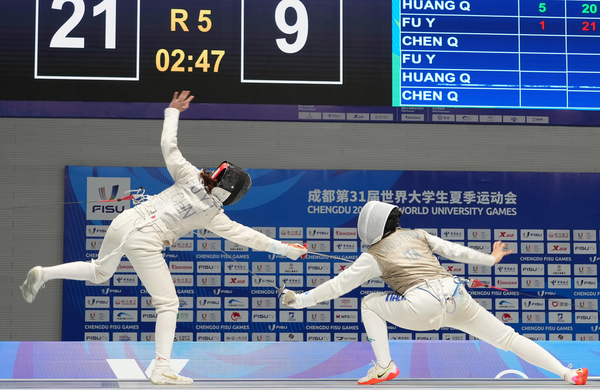 从津门到蓉城需要跨越2000公里,看似遥远的两个城市,由一场备受瞩目的赛事得以紧紧相连。成都第31届世界大学生夏季运动会(以下简称“大运会”)已正式落下帷幕,但在通话音中、聊天框内,道喜祝贺声却迟迟未停。除了优秀的体育健儿,在大运会上我们还望见了更多的天外身影,他们自信昂扬、全情投入,以不同的身份与视角,共构了一幅“中外求索 德业竞进”的天外拼图,让我们得以珍藏这一份天外与大运会的独家记忆。 成都大运会收藏的乐鱼·体育徽章 百尺竿头更进一步 大运赛场风采夺目 8月4日,大运会击剑女子佩剑个人赛决赛,邵雅琦披荆斩棘,以15-10的成绩击败韩国队选手崔知英,一举夺下她职业生涯的首块金牌,同时也是成都大运会中国队击剑项目首金。 邵雅琦(左)在比赛中。新华社记者 骆学峰 摄 天津姑娘邵雅琦是我校英语学院的一名学生,同时也是一位身经百战、经验丰富的优秀击剑运动员,曾代表中国参加2021年东京奥运会。在本届大运会开始之前,她跟随中国队参加了亚洲击剑锦标赛和米兰世界击剑锦标赛两场世界级击剑赛事,取得了两银一铜的成绩。连续多场高级别赛事,对即将参加大运会的邵雅琦来说,无疑增加了