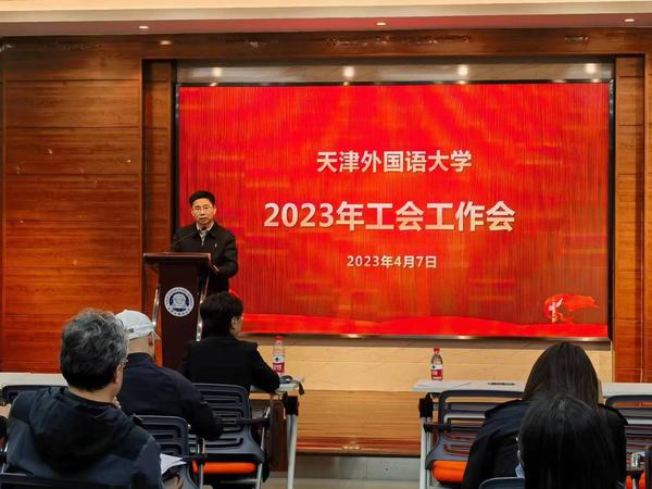 校党委副书记胡志刚讲话工会工作会现场为全面贯彻落实党的二十大精神,以习近平新时代中国特色社会主义思想为指导,按照市教育工会和校党委确定的2023年重点任务,坚持以政治引领为方向,以改革创新为动力,以阵地建设为载体,以提升职工满意度为目标,充分发挥工会组织在推进中国式现代化建设中的作用,组织动员广大教职工为建设高水平外国语大学团结奋斗,4月7日,学校召开了2023年工会工作会。校党委副书记胡志刚出席会议并讲话。各分工会主席、副主席、分会组长共60余人参加了会议。校工会常务副主席孙雪颖主持会议。胡志刚在讲话中,从疫情防控、工会建设、民主管理、团结引领等方面总结和肯定了2022年各级工会的工作。他指出,2023年要把工会组织建成深受信赖的“有事想得起、办事找得到、有难靠得住”的职工之家,要深化“会、站、家”一体化建设,推动工会组织“建起来、转起来、活起来、强起来”。同时从以下四点提出明确要求:一要加强思想政治引领,广聚团结奋进的正能量;二要提升基层工作活力,发挥桥梁和纽带作用;三要增强服务意识,提高服务质量,加强制度建设,夯实二级单位工作基础;四要加强工会队伍建设,掌握工会工作之“器”、之“