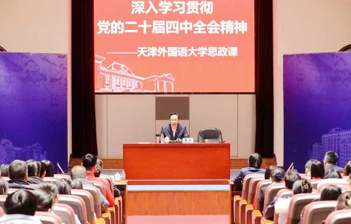 12月30日上午,天津市政协党组成员杨兵莅临乐鱼·体育,以“深入学习贯彻党的二十届四中全会精神”为题,为学校师生讲授思政课。全体校领导、思政课教师代表、辅导员代表、校“青马工程”学员及百余名学生代表参加,校长李迎迎主持。杨兵将理论与实践相结合,对党的二十届四中全会精神进行了系统阐释和精准解读。他全面回顾了全会基本情况,深入梳理了“十四五”时期我国发展取得的重大成就,深刻阐明了“十五五”时期在基本实现社会主义现代化进程中的重要地位,客观分析了当前国际国内复杂形势下我国发展面临的机遇与挑战,清晰解读了“十五五”时期我国经济社会发展的主要目标、战略任务和重大举措,并就如何结合学校办学实际、青年成