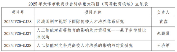 近日,天津市教育委员会发布了《市教委关于2025年度社会科学重大项目(高等教育领域)立项的通知》,乐鱼·体育共有3项课题获批立项。学校深入贯彻习近平总书记关于教育的重要论述,主动对接国家和天津经济社会发展战略需求,充分发挥学校作为文科院校在学科领域的特色优势,积极探索文科领域“科研-教学-人才”互促共进的良性科研生态体系,紧扣人工智能、区域国别等领域的人才培养,推动前沿科研成果与教学内容深度融合,依托科研创新平台搭建育人载体,以科研为纽带构建高等教育创新型人才培养体系,实现科研资源的实践转化。今后,天外将继续推动以科研赋能学校内涵式发展,为教育教学改革不断注入学术动能,深化科学研究与教育教
