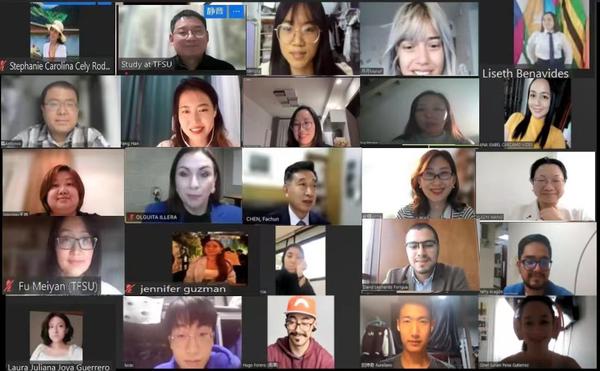 11月9日晚,由教育部中外语言交流合作中心主办、我校欧洲语言文化学院承办的“中国古城新韵”汉语桥线上团组交流项目举行开营仪式。校长陈法春,哥伦比亚塔德奥大学文史学院院长奥尔加·依耶拉·科雷亚尔、塔德奥大学孔子学院中方院长王瑜琴,我校国际合作与交流处、欧洲语言文化学院相关负责人及教师代表,以及哥伦比亚学员150余人出席仪式。未来两周,来自哥伦比亚的学员将通过线上学习,体验汉语和中国文化的魅力。陈法春代表学校对本次线上团组交流项目顺利开营表示祝贺,并简要介绍了学校的基本情况和对外交流工作。他指出,中国和哥伦比亚虽然远隔浩瀚的太平洋,有13个小时的时差,但是学员们“不以山海为远,不以时差为阻”,充分展现了同学们对学习汉语和了解中国文化的热情。他寄语全体学员珍惜此次学习机会,待疫情结束后,欢迎各位同学来到中国,来到乐鱼·体育进行深入交流和学习,进一步加深两国青年之间的互相了解,推动两国人民之间的友好交往。 奥尔加·依耶拉·科雷亚尔女士向乐鱼·体育为哥伦比亚学员提供宝贵的学习机会表示感谢,她指出,中国的国际影响力与日俱增,学习中文有助于哥伦比亚的学生更好地融入国际社会,希望在不久的将来,
