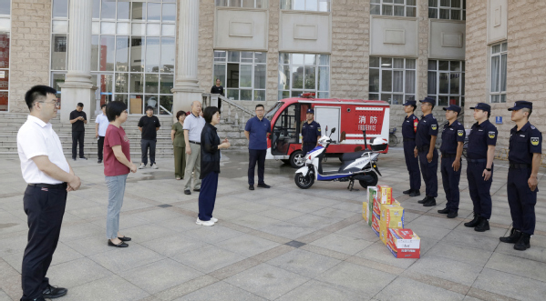 为深入学习宣传贯彻习近平新时代中国特色社会主义思想,贯彻落实天津市总工会、天津市教育工会“夏送凉爽”工作的精神,切实深入基层、深入一线,送上组织关怀,天外开展“夏送凉爽”暑期慰问活动。校党委书记周红蕾,校长李迎迎带队慰问暑期坚守户外高温作业和昼夜值守、在岗加班的教职工,向大家送上防暑降温的物资和学校的问候。校党委副书记胡志刚,副校长程国毅,副校长朱鹏霄,相关部门负责人和工作人员参加活动。校领导先后深入两校区教学楼、招生办公室、国际交流中心、施工现场和学生宿舍等岗位,与站岗执勤、巡逻防控的保卫人员、暑期接待学访团组、各项工程的管理人员、宿舍调整的学工人员以及坚守各岗位的教职员工亲切交流,对他们在高温天气下坚守岗位、默默付出的精神表示肯定与感谢。周红蕾指出,今年暑假学校承接重要外事活动服务保障等重要任务多、国际交流项目多、提升改进学校办学环境的工程多、保障安全稳定的任务重,叮嘱大家在保障工作的同时,注意劳逸结合,做好防暑降温,确保自身健康安全。并鼓励大家要以高度的责任感和使命感,积极推进各项工作,合理安排工作时间,做好防火、防洪、防汛排查,确保假期校园安全稳定。此次活动不仅为坚守在一线的教