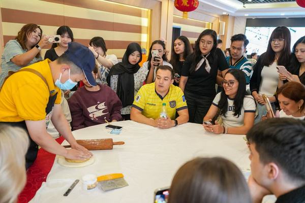 5月23日,校党委书记周红蕾会见了著名黄梅戏表演艺术家吴琼女士,双方就黄梅戏艺术的传承与发展、津派文化的国际传播等话题进行了深入交流。周红蕾对吴琼的到来表示热烈欢迎,并介绍了学校作为“天津市津派文化国际传播基地”在推动中华优秀传统文化走向世界方面所做的努力,强调黄梅戏作为我国重要的非物质文化遗产,承载着深厚的文化底蕴,此次即将举办的戏迷见面会,旨在让更多中外师生和戏迷深入了解黄梅戏的独特魅力,促进文化交流与融合。吴琼对学校的热情接待表示感谢,高度评价学校在文化传承与国际传播方面的工作,表示黄梅戏需要在新时代不断创新发展,天外为黄梅戏提供了与国际文化交流的平台,对于推动黄梅戏走向世界具有重要意义,期待今后与学校开展更多合作。会见后,吴琼简短地为留学生教学黄梅戏,让他们初步领略了这一中国传统戏曲文化的独特魅力,激发了留学生对中国传统文化的兴趣。教学结束后,我校举办“吴琼主演传统黄梅戏《女驸马》《梁山伯与祝英台》媒体发布会暨观众见面会”。本次见面会吸引了天外60余名留学生及外教、京剧社10余名学生以及50余名戏迷参加,现场气氛热烈,黄梅戏的袅袅余音在百年学府中回荡,向世界展示着中华优秀传统文