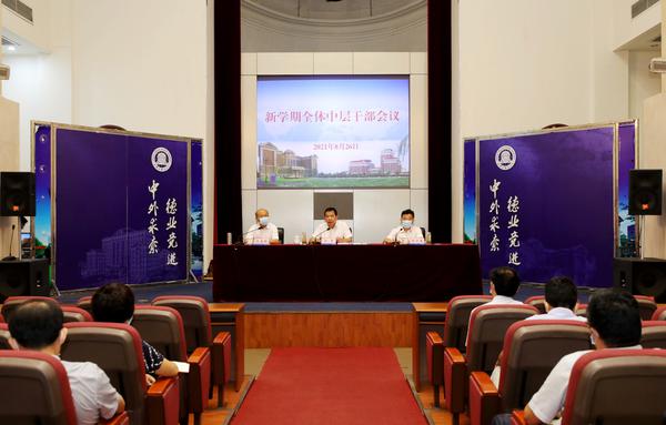8月23日,我校召开2021年秋季学期开学疫情防控工作线上视频会,全体校领导、中层干部及学生工作干部代表参会,校党委书记殷奇主持会议。殷奇指出,当前疫情防控形势依然严峻,外防输入、内防反弹压力持续存在。秋季开学情况复杂,各单位要严格按照市教委要求,从严、从紧、从细、从实落实开学方案。一是要坚决克服麻痹思想、厌战情绪、侥幸心理、松劲心态,确保各项防御措施落实到位;二是严格落实疫情防控工作责任制,严格落实疫情防控第一责任人责任,时刻保持清醒头脑,算清政治账、经济账;三是勠力同心、协同作战,领导干部要高度重视、以身作则、靠前指挥,各部门要树立阵地意识,落实网格管理,坚决杜绝推诿扯皮、敷衍塞责;四是确保措施落实落地,突出“防”,关口前移、防得住;突出“实”,再度全面检查措施落实情况;突出“练”,对预案真演练、对流程多熟悉;突出“早”,早发现、早诊断、早报告、早治疗;突出“常”,做好打持久战准备,做好常态化防疫。校长陈法春强调,疫情防控是秋季开学的首要工作。一是疫情防控工作丝毫不能放松,要严格落实开学方案和具体要求;二是加强沟通协调、及时报送信息,各单位要加强配合,强化与属地的协调,建立有效沟通