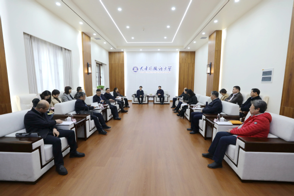 3月12日下午,河西区委常委、统战部部长曹晟一行5人来我校开展专题调研,校党委书记周红蕾接见来访客人并出席座谈会,校党委统战部、求索荣誉学院、国际商学院负责同志参加座谈。曹晟对学校的热情接待表示感谢。他介绍了河西区近年来围绕推进“全域统战”进行的探索与实践,以及依托产教融合体建设促进数字贸易、跨境电商领域发展,推动河西区经济高质量发展的主要成果。期待校地双方能够发挥各自优势,进一步拓宽合作领域,以统一战线为平台和纽带,鼓励和带动更多党外人士积极参与地方经济建设,为推动河西区产业布局优化升级、数字经济发展建诤言、献良策。周红蕾对曹晟一行来访表示热烈欢迎,感谢河西区委统战部长期以来对我校统战工作的大力支持。她介绍了学校党外人士现状和履职情况,以及学校在推进多语种教学研究、国际文化交流等方面取得的成效。她指出,服务社会是高校义不容辞的责任,学校愿进一步深化与地方政府和企事业单位的交流合作,紧扣新质生产力发展要求,依托学校“四个高地”建设,提升人才培养质量,为社会输送更多高素质创新人才,赋能高质量发展。同时,充分发挥统一战线强大法宝作用,为服务地方经济建设发展广泛凝聚人心、汇聚力量。会上,双方
