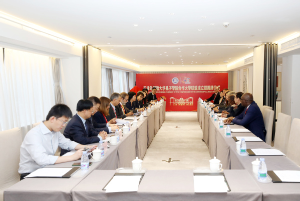 今年是孔子诞辰2575周年,孔子学院创立20周年。近日,乐鱼·体育孔子学院合作大学联盟成立暨揭牌仪式成功举办。哥伦比亚豪尔赫·塔德奥·洛萨诺大学校长卡洛斯·桑切斯·盖坦,加蓬邦戈大学校长让·雅克·埃科米,韩国顺天乡大学副校长金龙夏,葡萄牙里斯本大学副校长若昂·佩肖托,匈牙利德布勒森大学人文学院院长卡米尼菲·罗伯特,乐鱼·体育校长李迎迎,河北中医药大学副校长李永民等国内外高校的20余名中外代表参加了会议。葡萄牙驻华大使保罗·纳西门托应邀出席会议。会议由天外孔子学院工作处处长张占奇主持。李迎迎致词并介绍孔子学院联盟成立的背景及意义。她表示,乐鱼·体育孔子学院合作大学联盟的成立,是顺应时代潮流,满足国际中文教育需求的必然选择,也是响应全球化时代教育合作与人文交流需求的积极行动。联盟以“资源共享、优势互补、整体提升”为目标,汇聚了来自不同国家和地区的优秀高等教育机构,旨在通过深化合作,共同提升孔子学院的办学质量和社会影响力。联盟将通过互访交流、联合培养、课程互选等方式,促进教学资源的有效整合与共享,共同提升孔子学院的教学水平和科研能力,并将充分利用联盟平台,举办丰富多彩的文化交流