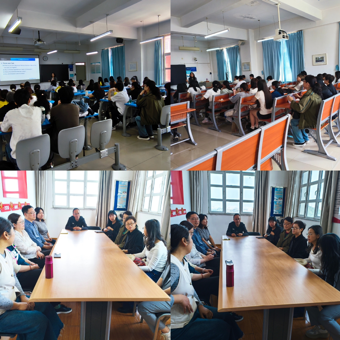 为深化两校对口支援合作,共促外语教学高质量发展,2025年5月12日至16日,青海民族大学外国语学院4位公共外语教师到访我校,开展为期五天的进修学习活动。此次活动以“听课观摩+座谈交流”为主要形式,旨在促进校际资源共享与教学经验互鉴。听课观摩环节,旨在聚焦课堂实践,共探教学创新。青海民族大学教师团队深入天外两校区课堂,观摩通识教育学院骨干教师的示范课程,涵盖英语国家文化、学术英语口语、学术英语读写、大学英语精读等多门课程。授课教师以生动案例与创新方法展现了天外通识教育的特色,双方就课程设计、学生互动及技术融合等展开课后研讨。5月13日下午,通识教育学院以“共话学科建设,赋能外语教育”为主题,组织两校教师代表在逸夫楼白沙发会议室举行专题座谈会。会议由天外通识教育学院副院长杨旸主持,围绕学科建设、教学改革等核心议题展开。学术英语教研室主任姜贵梅、副主任邢维慧分别介绍了大学英语课程体系构建及一流课程建设经验,强调了“以学生为中心”的教学理念;语言文化教研室主任李冰芷分享了AI技术在外语教学中的创新应用,展示智能平台如何助力课堂效率提升; 语言文化教研室副主任张烨系统解析了天外大学英语四六级考