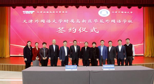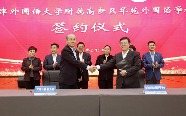 2021年2月5日,滨海高新区管委会与乐鱼·体育合作举办乐鱼·体育附属高新区华苑外国语学校(以下简称“高新区华苑附校”)签约仪式在高新区华苑科技园海泰大厦隆重举行。天津滨海新区教体局局长宫丽艳,天津滨海高新区党委书记、管委会主任夏青林,天津滨海高新区管委会副主任陈进红、韩林,乐鱼·体育党委书记殷奇,乐鱼·体育党委副书记、校长陈法春,乐鱼·体育副校长程国毅出席。