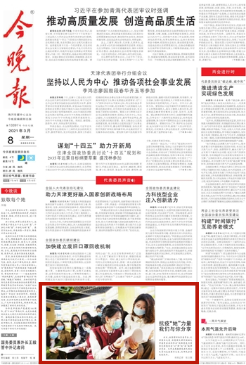 《今晚报》头版以《抗疫“她”力量 我们与你分享》为题目进行了报道。