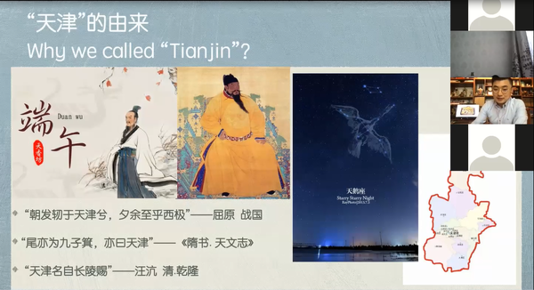 围绕“当代中国”主题,本项目设计了四场讲座。王铭玉教授的“一带一路”专题讲座从经济、外交、人文三个维度,为学员们剖析了新时代中国发展的国际环境,视野宽阔、内容翔实、高屋建瓴;李迎迎教授策划并主讲的“新冠疫情防控之中国行动”从“天外行动”、“津门担当”、“中国复苏”三个角度展开,向外国朋友讲述了中国对新冠肺炎疫情的防控措施和行动,展现了中国人民面对疫情团结一致的精神品格,内容紧贴当下,传递好中国声音;史亚军教授的在线讲座“中国非物质文化遗产概说”为学员们全面介绍了我国非物质文化遗产名录中的书法、京剧、太极拳、长城、二十四节气等,内容妙趣横生,课堂互动气氛十分热烈;我校校友、“侃爷茶馆”微信号创始人李响老师在“走进天津”讲座中为学员们讲述了“天津”命名的由来、历史故事以及城市风貌,引起了学员们极大的兴趣。