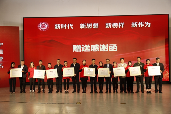 获奖学生代表为企事业单位代表赠送感谢函