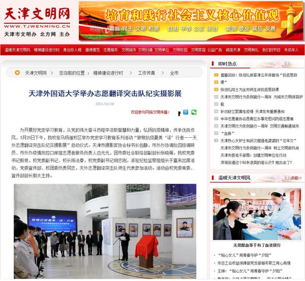 3月30日,天津文明网以《乐鱼·体育举办志愿翻译突击队纪实摄影展》为题,转载我校相关活动报道。