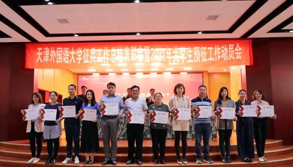 为深入贯彻落实习近平总书记强军思想,表彰征兵工作先进典型,激发天外学子参军爱国热情,推动征兵工作常态化、高质量发展,5月14日下午,我校在马场道校区大学生活动中心召开征兵工作总结表彰会暨2021年大学生预征工作动员会。校党委副书记胡志刚、河西区人民武装部政委邢勇出席会议并讲话。