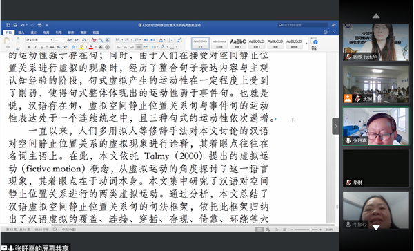 5月18日,北京语言大学张旺喜教授应邀作题为《汉语对空间静止位置关系的两类虚拟运动》的专题讲座。本次讲座为国际教育学院首届学术月的第二场讲座,通过腾讯会议方式进行,由国际教育学院副院长行玉华和牛顺心教授主持。学院所有研究生和部分老师,以及上海师大、北语等外校师生近100人参加讲座。