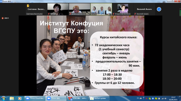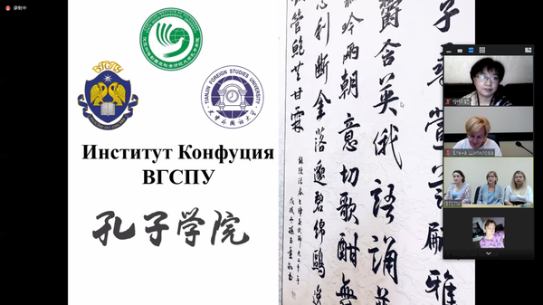 当地时间9月2日,我校友好合作院校俄罗斯伏尔加格勒国立社会师范大学(以下简称“伏师大”)举办“孔子学院专场”线上招生咨询会,向汉语爱好者们介绍俄罗斯伏尔加格勒国立社会师范大学孔子学院基本情况并做现场咨询。伏师大校方代表、孔子学院中外方院长及师生代表参会。咨询会由伏师大校方代表什比洛娃主持。