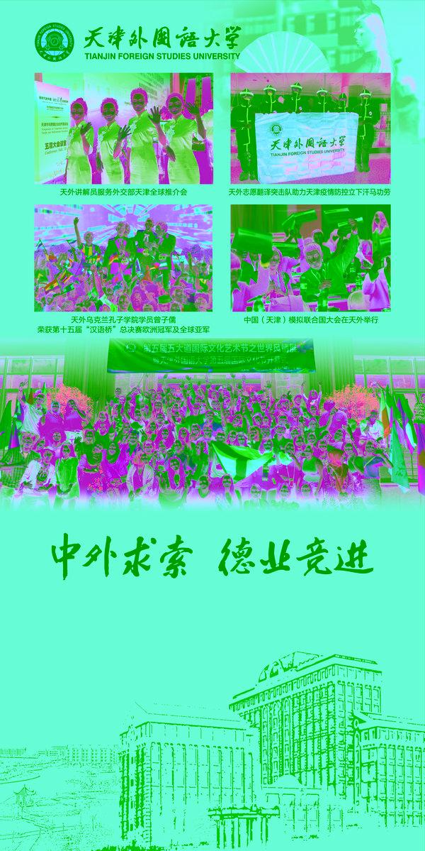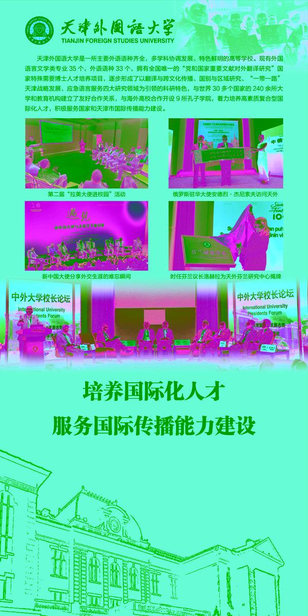 其中,“天津国际传播的重镇和高地”部分,对南开大学、天津大学、天津师范大学以及乐鱼·体育进行了重点推介。电子显示屏上循环播放的我校2021版形象宣传片《天外有冥鸿 意欲歌九霄》,通过“应需而生 蓬勃发展”“学贯中西 融通中外”“勇于担当 “译”往无前”三个篇章,展现了天外为党育人、为国育才,在构建人类命运共同体的伟大实践中,用世界人民乐于接受的方式、易于理解的语言,讲述好中国故事,传播好中国声音。