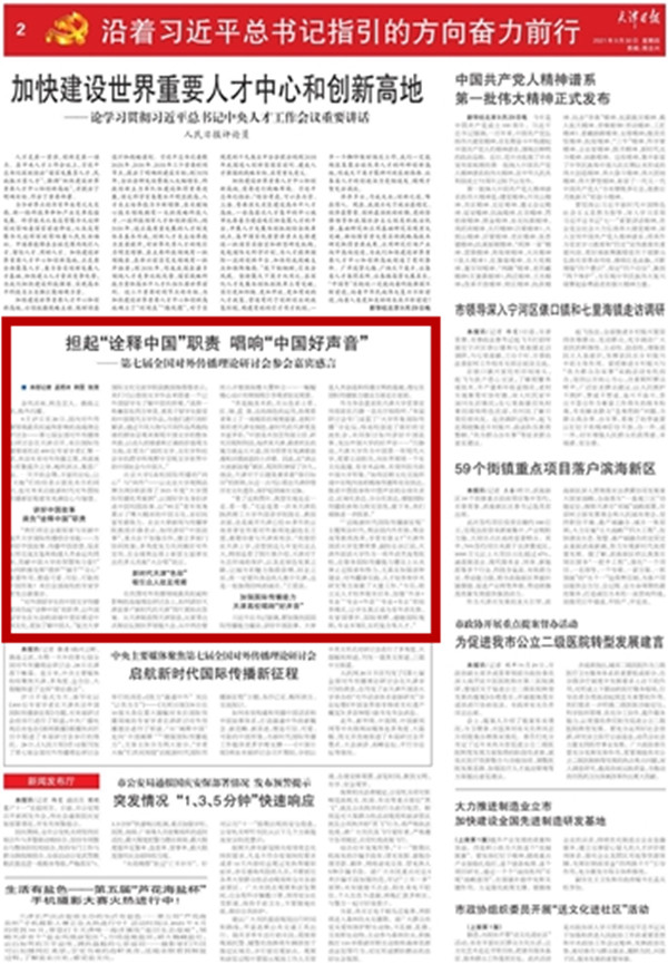 9月27日,《天津日报》以《第七届全国对外传播理论研讨会在津举行》为题,进行了报道。