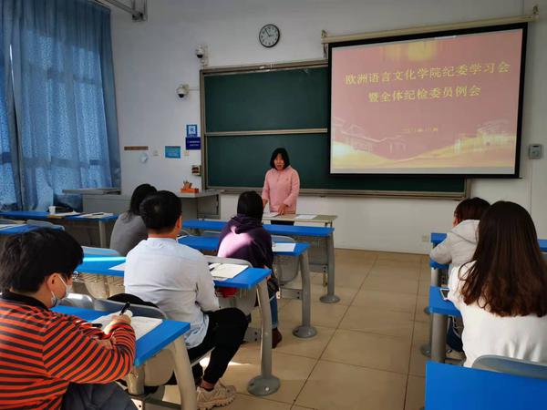 为深入学习习近平新时代中国特色社会主义思想,贯彻落实我校2021年党风廉政建设宣传教育月活动的安排部署,进一步提高纪委委员和纪检委员的廉政意识,10月12日下午,欧洲语言文化学院纪委全会暨纪检委员全体大会在逸夫楼W105召开。会议由院纪委书记韩菲主持,院纪委委员、各支部纪检委员参加,学生党支部书记列席。