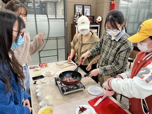 中韩学生共同制作炒饭