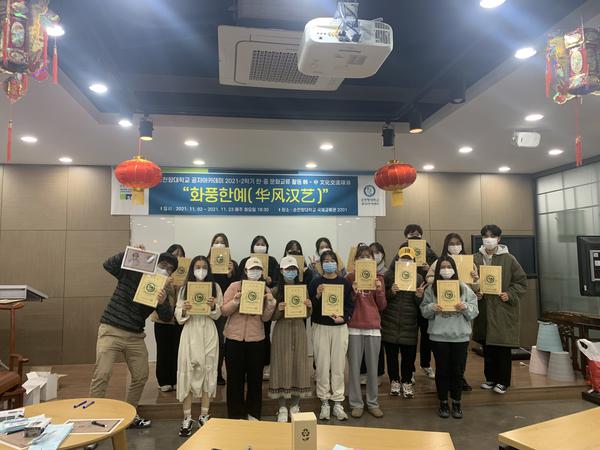 十一月的韩国,冬意渐浓,寒气日增,而顺天乡大学孔子学院(以下简称“孔院”)活动室却人气不减,热闹非凡。11月2日至23日期间,每周二晚上的“华风汉艺”系列活动如期举行,参与本次活动的中韩师生达100余人次。尽管受疫情影响,对活动人数做了一定的限制,强化了防疫措施,但活动氛围却不减往年。