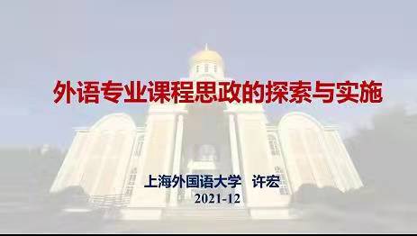 近日,上海外国语大学俄罗斯东欧中亚学院院长许宏教授应邀作客我校“研究生培养与质量提升”系列讲座,以“外语专业课程思政的探索与实施”为题,与欧洲语言文化学院师生进行线上交流与分享。讲座由欧洲语言文化学院俄语学科带头人姜雅明教授主持,学院教师及硕博研究生近50人参加此次活动。