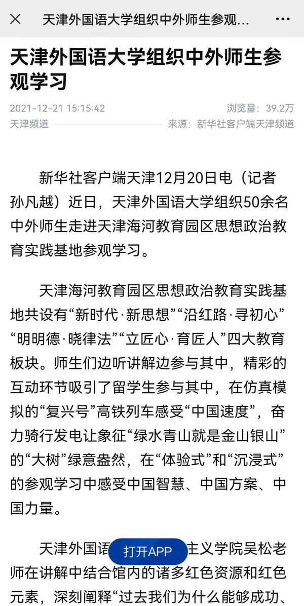 新华社客户端以《乐鱼·体育组织中外师生参观学习》为题进行了报道。