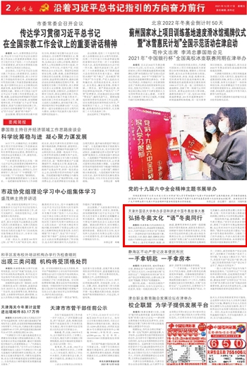 12月22日,《天津教育报》A2版以《“译”心“译”意 将天津故事讲给世界听》为题,深度采访报道了我校中国特色社会主义理论体系国际传播外译研究中心组织师生踏上“寻访红色印记 助力‘四史’宣传”之旅。