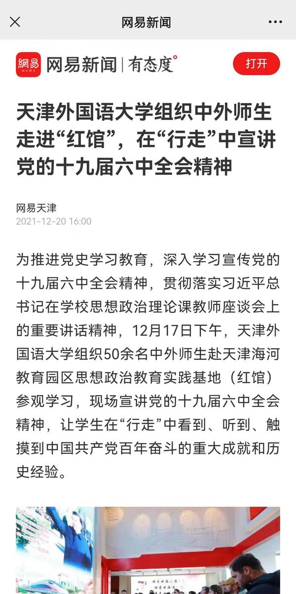 网易新闻以《乐鱼·体育组织中外师生走进“红馆”,在“行走”中宣讲党的十九届六中全会精神》为题进行了报道。