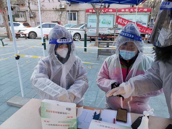 国内合作与校友联络工作处副处长郭晓明和爱人孙老师都是学校教职工,夫妻二人齐上阵,共同协助第二轮核酸筛查工作。张璐云老师协助社区撰写、张贴核酸检测通知,在寒风中奋战12个小时,完成1200余人的信息录入。苑菲老师,民盟盟员,接到通知后打车15公里前往河西区振才里社区开展志愿服务,组织居民排队等候,逐人测量体温,查验健康码,帮助老人下载软件、申领健康码,持续到第二天凌晨才从服务地点离开。