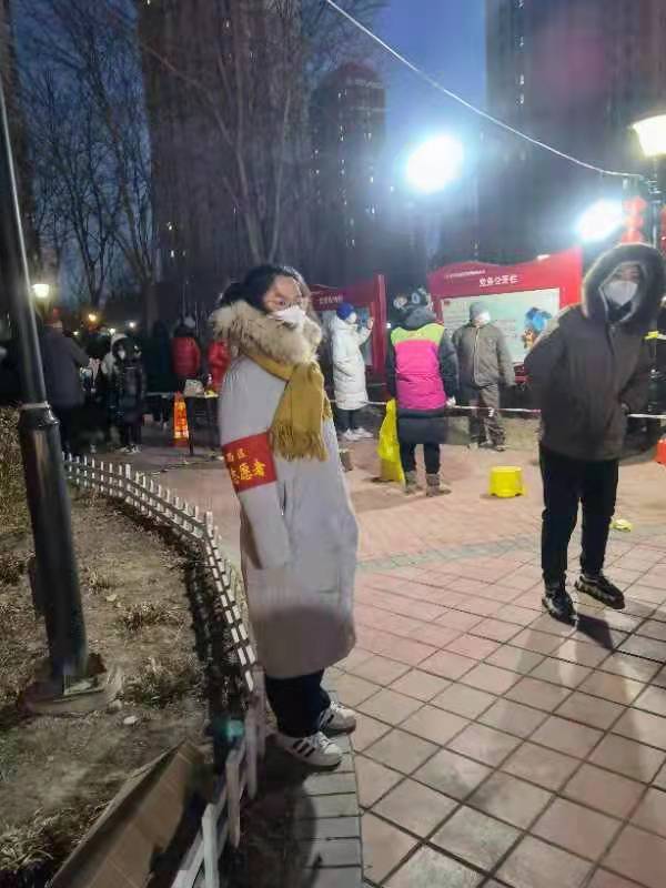 国际关系学院党委委员、副院长王梦1月15日清晨6点便到达春晖里社区参与“三筛”志愿服务工作,逐门逐户通知,保证居民应检尽检,直到午后13点结束最后一户的信息采集才喝上一口热水。学院纪委委员、政管系教师曹龙兴1月15日早上5点就到达核酸检测点位,逐楼逐层通知持“绿码”的居民下楼检测,登记需要入户检测核酸的居民,确保大筛工作全覆盖、无遗漏。双脚冻麻了,嗓子喊哑了,他依然保持饱满的精神状态,紧张地工作着,他说:“抗击疫情就是为了人民,也必须依靠人民,党员应该在艰难的环境中得到历练和成长。”学院专业教师李建强,九三学社社员,自西青区大寺镇被划定为管控区以来,他不顾风险,多次主动参与核酸检测志愿服务。1月15日,由于筛查开始时间临时提前,他未吃早饭便仓促出门,深入楼宇逐户喊醒仍在睡梦中的居民,清晨的温度很快让N95口罩里结满了水,但是强烈的责任感和使命感使他从未想过退缩。