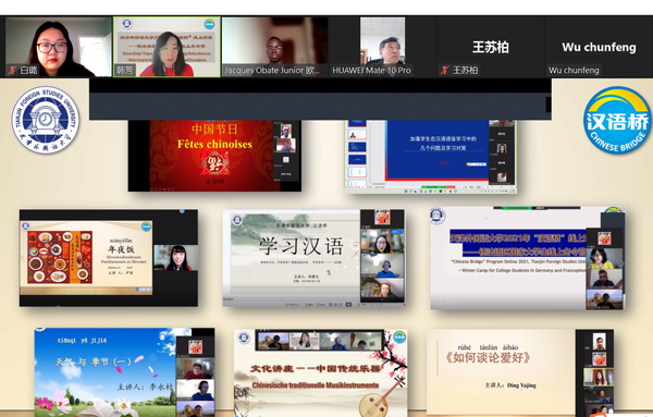 闭营仪式上,大家共同观看了本次冬令营项目直播课程视频集锦,回顾了汉语直播课的难忘时刻。短短9天时间里,课程涵盖了汉语视听说、汉语实用口语等语言课程,以及中国饮食文化、中国传统乐器、天津民俗艺术、天津地方特色小吃、天津旅游文化、中医及中式养生等文化课程。授课教师们精心设计,认真讲授,提升了学员们对汉语学习的兴趣,拉近了他们和中国文化的距离。学员们下课后在直播会议室流连忘返,与老师们热情交流,连连称赞,感谢之情溢于言表。课外,学生也通过微信群纷纷表示,他们非常喜欢本次冬令营的课程内容,收获颇丰。