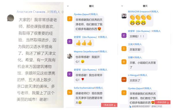 本项目学员对全部课程给予充分认可,同时为课程提供了有价值的反馈和建议。不少学员表示,通过本次课程提高了对中国的认识,特别是对天津有了较全面的了解,希望能尽快来到天津,亲自感受“哏儿都”的文化魅力。