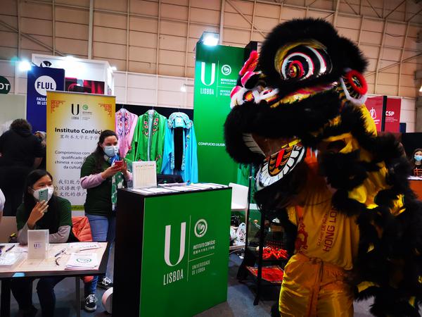 展会期间,孔子学院还特别邀请了里斯本舞狮表演团到展区进行表演。舞狮表演惟妙惟肖、出神入化,为现场的观众带来了全新的文化视觉享受,也为孔子学院及里斯本大学的展区凝聚了超高人气。