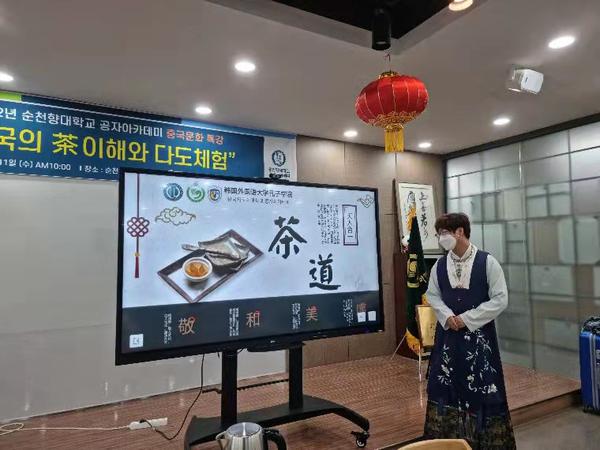 5月11日,由顺天乡大学孔子学院与韩国外国语大学孔子学院两所孔子学院共同开设的“中国茶的理解与茶道”“太极文化表演”共享课进行了运行前试讲。共享课分别由韩国外国语大学孔子学院教师陈吉文、顺天乡大学孔子学院教师刘飞主讲。课程审核专家分别为顺天乡大学教学副校长金在弼、韩国外国语大学孔子学院中方院长姜颖、顺天乡大学孔子学院韩方院长朴炯春和顺天乡大学孔子学院中方院长赵华。