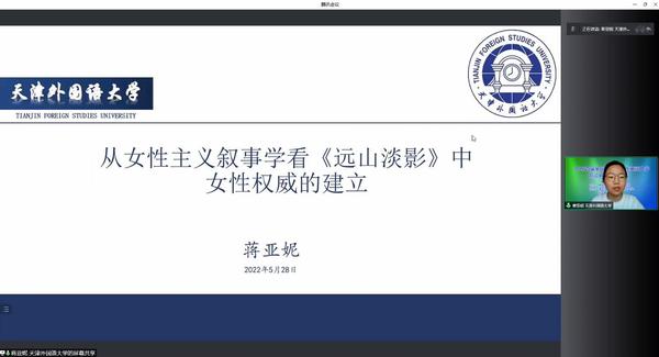 蒋亚妮和李浩竞分别从视角分析解读了石黑一雄的《远山淡影》和小说《到十九号房间去》。前者呼吁女性要勇于表达内心的真实想法,后者则揭示了20世纪60年代知识女性在生活中的矛盾心理。五位同学通过对文学理论的研讨和对文学、影视作品的分析,努力发现和创新,对文学世界与现实世界中的诸多现象做出新的解释,力求在推动人类社会健康发展的探索中,提供“中国智慧”和“中国方案”。