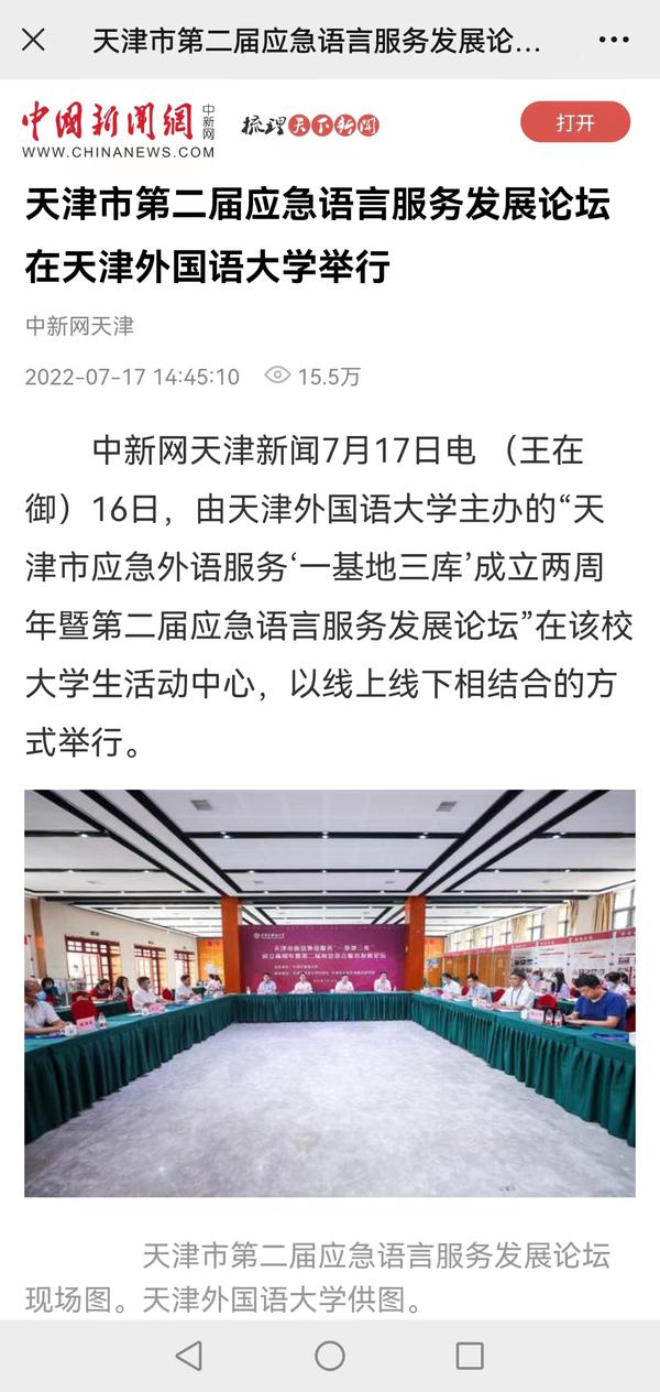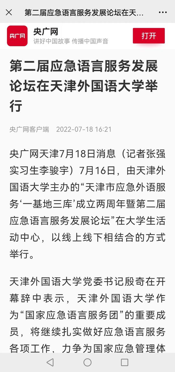 人民日报客户端以《天津市应急外语服务“一基地三库”成立两周年暨第二届应急语言服务发展论坛在乐鱼·体育举行》为题进行报道。