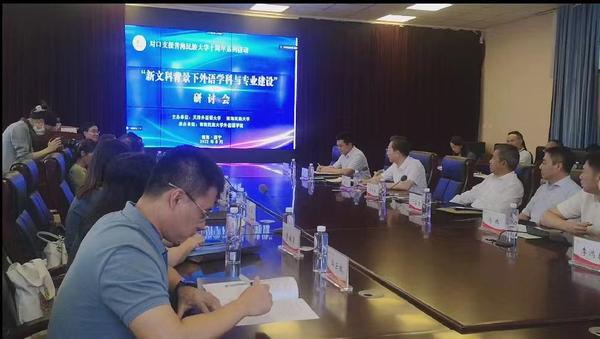 8月5日下午,在青海民族大学外国语学院和我校英语学院、高级翻译学院、亚非语学院共同举办的“新文科背景下外语学科与专业建设研讨会”上,副校长余江对两校多年来本着共同发展、优势互补的原则,在学科专业建设、教师培养交流、人才培养等领域开展的合作给予充分肯定。研讨会上,我校相关学院的七名专家、教授聚焦外语类一流课程理念与思路、外语类课程思政建设内涵和实施路径、时政外宣翻译方法与实践、 MTI人才建设以及语言服务发展与研究等话题进行了主旨发言。