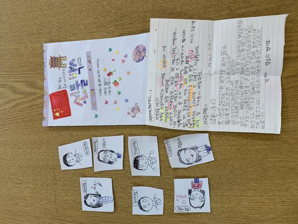 夏令营是顺天乡大学孔子学院的特色活动,区别于往年来中国实地体验,今年的夏令营活动在孔子学院举行。趣味汉语课、中国传统灯具制作、福文化介绍及福袋制作、中国书法与扇面制作、古诗欣赏及古诗图文制作、做饺子体验、糖葫芦制作体验,中国服饰体验、中国歌曲比赛、乒乓球体验、中国电影欣赏,每一项活动都让孩子们兴奋不已,乐在其中。活动结束时,夏令营学员金智雅用中韩两种语言给授课教师写了一封亲笔信,表达了她对夏令营各项活动的浓厚兴趣和对老师们的感谢,同时她还给每位老师绘制了可爱的卡通头像。