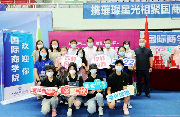 中保项目师生以心迎“新”,三届中保人分别身着国际蓝、梦幻粉、深空黑色文化衫同台亮相,中保项目师长为每一名新生戴上“欢迎帽”,贴上“中保人”徽章,赠送“中保人”专属手提袋、记事本、可乐。报到现场播放的学长学姐精心拍摄的“中保欢迎你”歌曲MV满载欢迎的热情和美好的期盼。