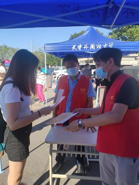 高级翻译学院“线上集结,线下暖心”,发挥全国高校“百个研究生样板党支部”辐射带动作用,在迎新现场设立党员先锋岗,现场接收新生党组织关系,有问必答,有惑必解,用服务带去温暖,以真心送去安心。由学生党员组建迎新志愿服务队,在志愿服务中践行初心使命、体现责任担当,用微笑温暖新生,用热情感染新生,用耐心帮助新生,“亮出来,做表率,树形象”,用实际行动践行初心使命。