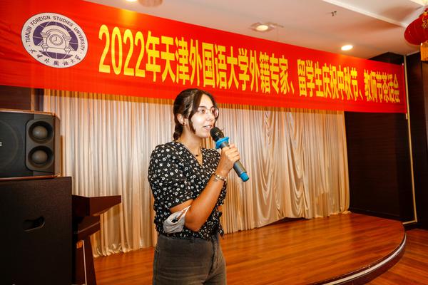 与会人员在面点师的指导下,亲身体验了如何制作月饼,感受到了中国传统美食的魅力。欧洲语言文化学院葡语系外籍教师黎颂明作为外籍教师代表发言,她表示,2022年中国的传统节日中秋节恰逢教师节,能够受邀参加活动感到非常荣幸,虽然面临新冠肺炎疫情等困难,但相信天津一定会战胜疫情,祝大家节日快乐,“千里共婵娟”!