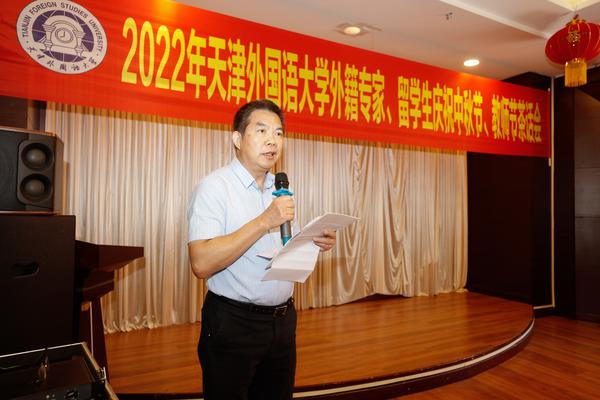 殷奇在致辞中表示,近年来,学校坚持走国际化办学道路,不断加强外籍教师的引进和外国留学生的招生力度,每年聘请来自世界近30个国家的40多名外籍教师来校工作,招收来自世界60多个国家的2000多名长短期留学生来校学习,2021年长短期线上线下留学生人数达到4600余人。面对突如其来的新冠肺炎疫情,外籍师生与中国师生一起,迎难而上,奋战在抗击疫情和“停课不停学、不停教”两条战线上,为抗击疫情做出了重要贡献。他祝愿每位外籍教师和留学生在天外校园的工作、学习顺利,家庭幸福,希望大家把天津当作第二故乡,继续支持参与学校建设,贡献智慧和力量。