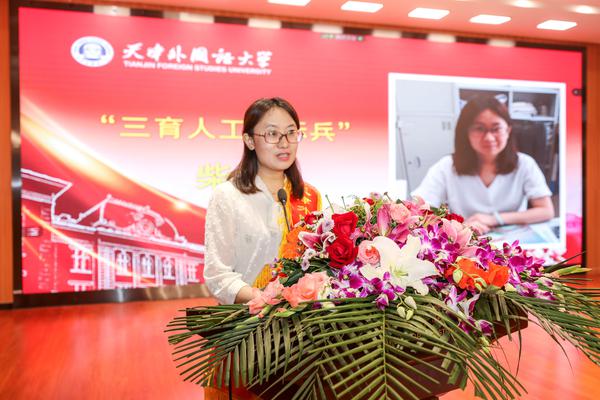 “三育人工作标兵”代表、附属外国语学校教师柴娜发言