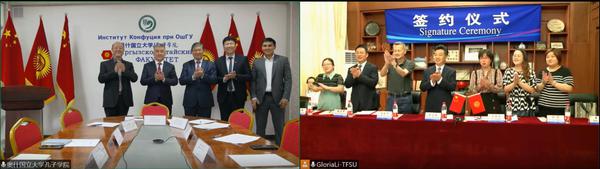 9月19日上午,我校与吉尔吉斯斯坦奥什国立大学通过线上会议签署了两校合作协议。我校校长陈法春、副校长李迎迎,奥什国立大学校长科卓别科夫·库达伊别尔迪、副校长阿卜杜瓦里耶夫·阿布德甘内出席会议。签约仪式由李迎迎主持。