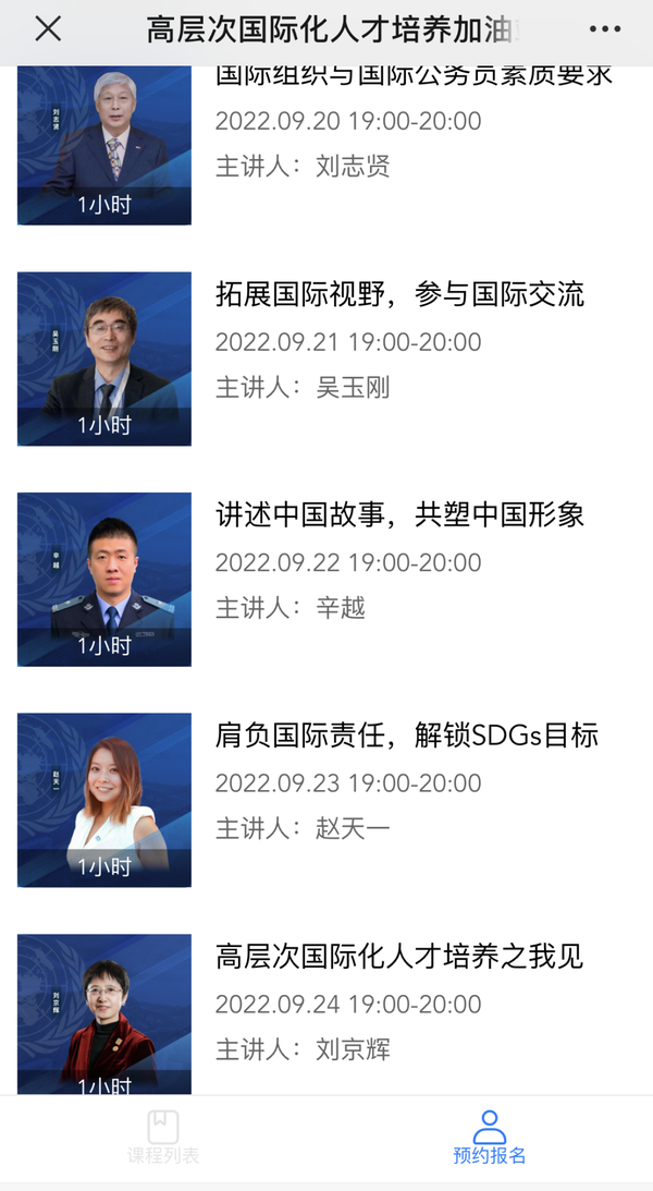 9月22日-9月24日继续为大家推出以下三场讲座报名链接。讲座三 讲述中国故事,共塑中国形象;讲座四 肩负国际责任, 解锁SDGs目标;讲座五 高层次国际化人才培养之我见。