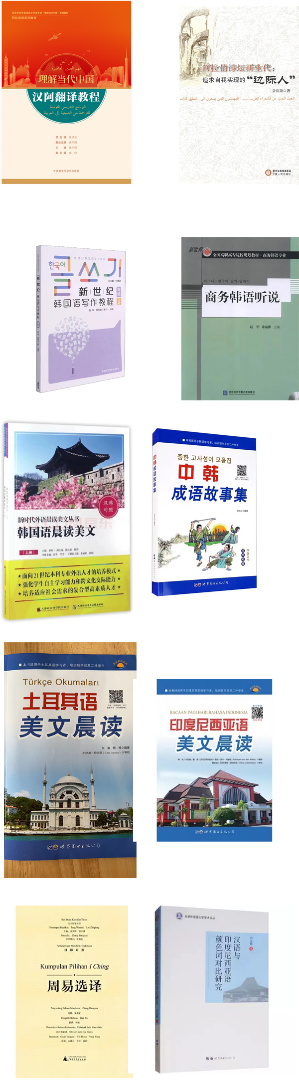 三、科学研究硕果累累。学院教师发表论文170余篇;出版学术专著30余部(含译著、教材);出版“理解当代中国多语种系列教材”《阿汉翻译教程》、“多语种美文晨读”系列教材、《商务韩语听说》、《斯瓦希里语阅读教程》等高质量教材20余部。主持获批国家社科基金项目1项,主持或参与国家级项目10项、省部级项目12项、厅局级项目11项;获核心期刊科研奖1项,获中国外语非通用语优秀科研成果奖3项,校级优秀教学成果奖3项,天津市级优秀教学成果奖1项;成功举办“阿拉伯文学研究会年会”“西亚非洲文化研究与‘一带一路’人文交流研讨会”“中韩国际学术会议”“‘一带一路’背景下东盟语种课程建设与教学研讨会”等大型会议;先后成立“非洲文化发展与‘一带一路’中非文化交流研究协同创新中心”“中蒙研究中心”。