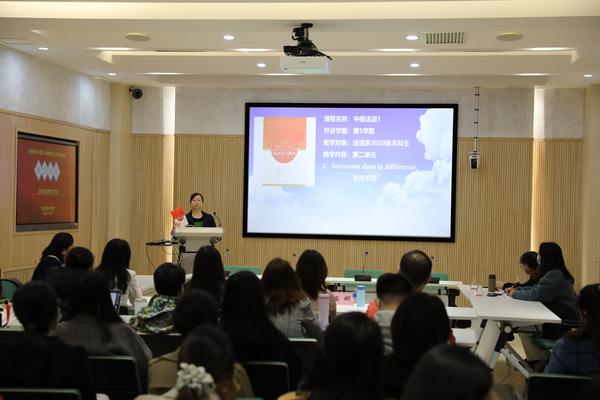 在示范环节,贾芳老师遵循语言与思政内容融合学习的教学理念,就教材第二单元《和而不同》的教学内容进行了示范。她表示,在《法语读写教程》融入法语专业课程的教学过程中,教师必须结合学生的学情特点,找准切入点,明确学生的课前学习任务,提高课堂效率。同时,教师需要适时转换角色,结合教材内容灵活选用恰当的方法,引导学生进一步提升自主学习能力和语言输出能力,同时帮助学生理解,外语学习从来都不仅限于语音语调、词汇语法等语言形式,更重要的是通过读写双向输出,准确理解和表达语言所承载的文化内涵,进而达到提升讲好中国故事的能力这一最终目标。