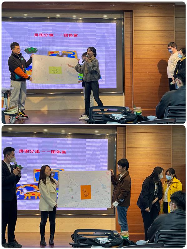 讲座现场气氛活跃,曹莉围绕教师的心理健康、心理危机化解、提升教师职业幸福感等内容,通过讲解案例、心理分析、互动体验等形式讲授心理健康知识,同时,从时间管理、压力管理和情绪管理等方面进行了职业规划指导。本次活动引入团体辅导环节,通过分组协同创作和现场讲解,促进了青年教师之间的合作交流,增强了教职工应对压力和挑战的信心,助力新教工尽快完成职业角色转换。本次讲座受到新教工的欢迎,取得良好效果。