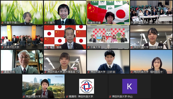 11月1日,由天津市外办、日本千叶市国际课联合主办的“天津市------千叶市大学生线上交流活动”成功举办。我校日语学院的20余名学生与天津师范大学、日本千叶大学、神田外语大学的学生相聚云端,交流思想,畅叙友谊。天津市外办主任栾建章、乐鱼·体育校长陈法春、天津师范大学校长钟英华和千叶市市长神谷俊一、千叶大学校长中山俊宪、神田外语大学校长宫内孝久分别视频致辞。千叶市市长公室长相乐俊洋、千叶市日中友好协会会长布施贵良出席活动。